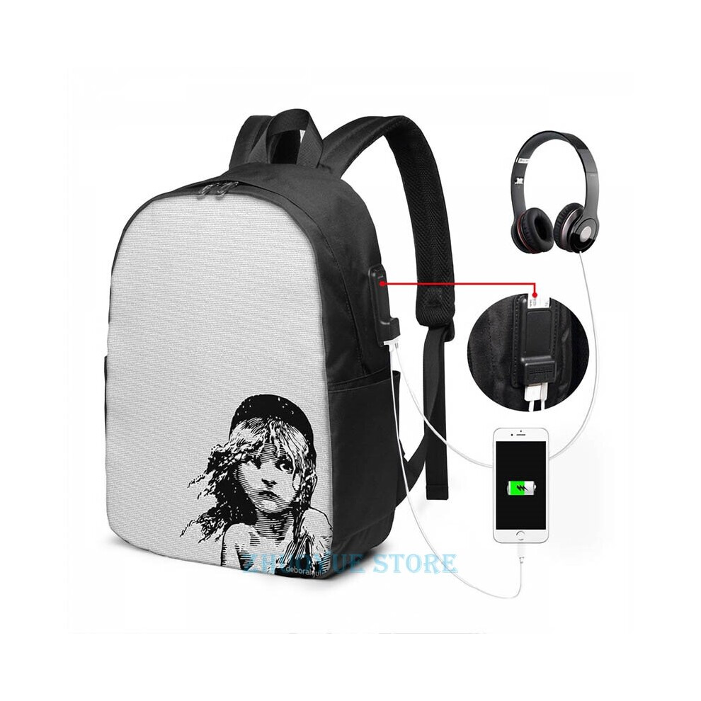Les Miserables Musical Full Script Lyrics USB Charge Backpack men School bags Women bag Travel laptop bag