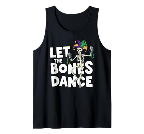 Mardi Gras Dancing Skeleton Let The Bones Dance Funny Parade Tank Top