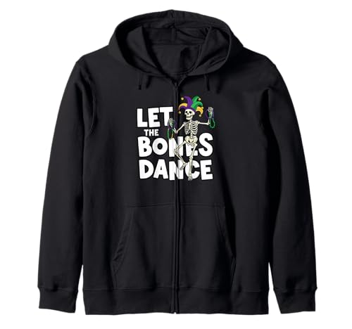 Mardi Gras Dancing Skeleton Let The Bones Dance Funny Parade Zip Hoodie