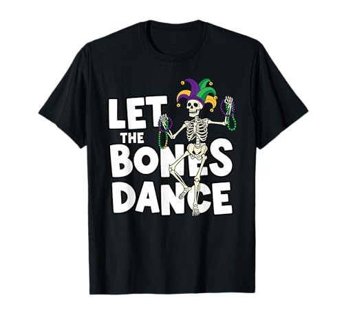 Mardi Gras Dancing Skeleton Let The Bones Dance Funny Parade T-Shirt