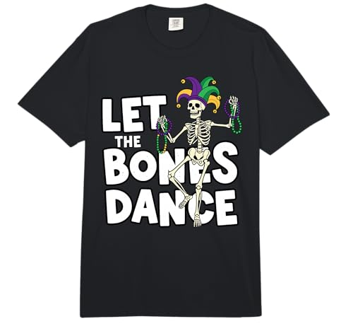 Mardi Gras Dancing Skeleton Let The Bones Dance Funny Parade Comfort Colors Adult Heavyweight T-Shirt