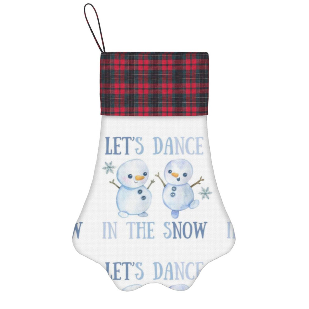 (Let's Dance In The Snow=5797) Paw Christmas Stockings Buffalo Tartan Plaid for Cats Dogs Pet Hanging Xmas Tree Decorations