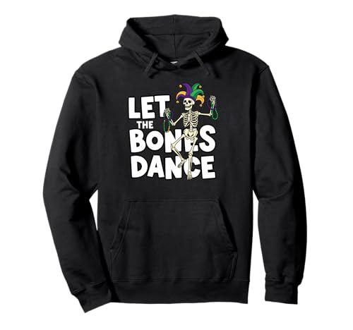 Mardi Gras Dancing Skeleton Let The Bones Dance Funny Parade Pullover Hoodie