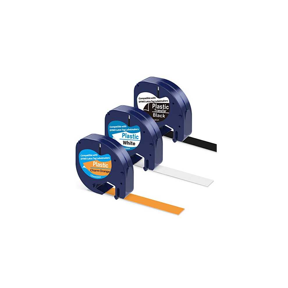 3 X 91201 Plastic Label Tape Compatible with Dymo Letratag Tape for Dymo Letra Tag LT-100H 100T QX50 Label Maker, 12mm x 4m Black on White