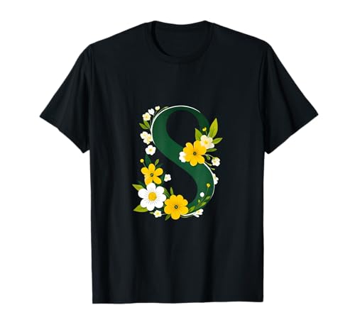 Cute Letter S Tshirt. The Letter S with Flowers and Leaves T-Shirt