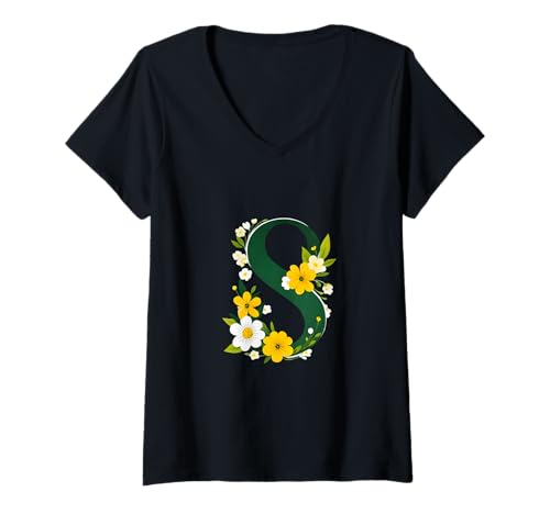 Womens Cute Letter S Tshirt. The Letter S with Flowers and Leaves V-Neck T-Shirt