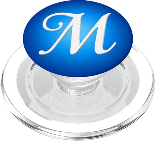 White Letter M on Pretty Blue, First or Last Name Initial PopSockets PopGrip for MagSafe