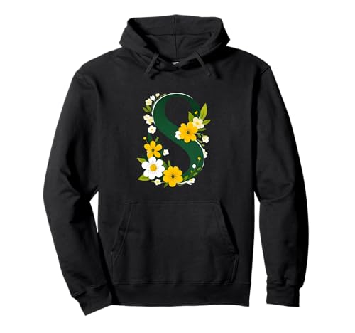 CUTE LETTER S TSHIRT. THE LETTER S WITH FLOWERS AND LEAVES Pullover Hoodie