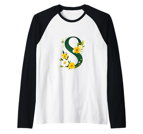 Cute Letter S Tshirt. The Letter S with Flowers and Leaves Raglan Baseball Tee