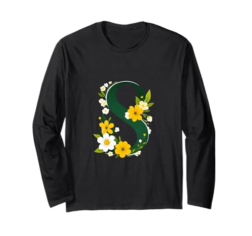 Cute Letter S Tshirt. The Letter S with Flowers and Leaves Long Sleeve T-Shirt
