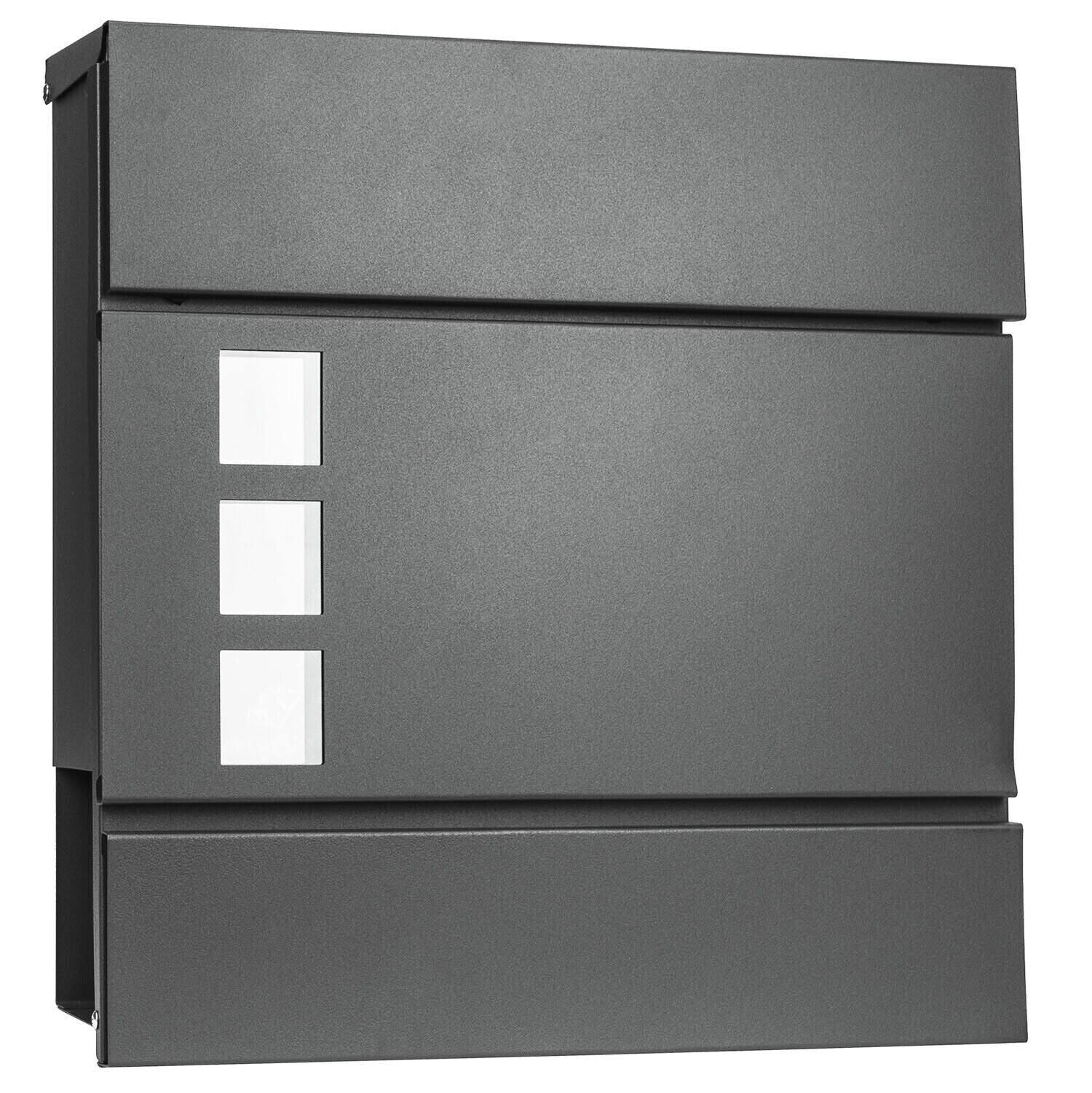 AREBOS Modern Design Letterbox Graphite Wall Mailbox Post Box