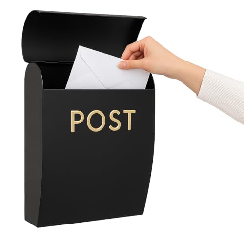 Assorted Collections Black Post Box Wall Mounted Letterbox with Easy Access No Lock for Outdoor Use - Weatherproof And Durable Mailbox Easy Installation, Strong Construction (Large)
