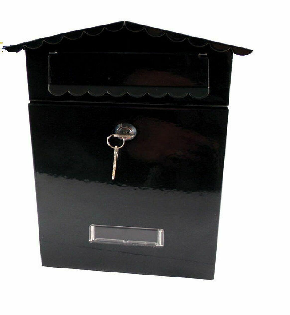 Black Mailbox Postbox Letterbox Wall Mounted Post Mail Letter Box Lockable Metal