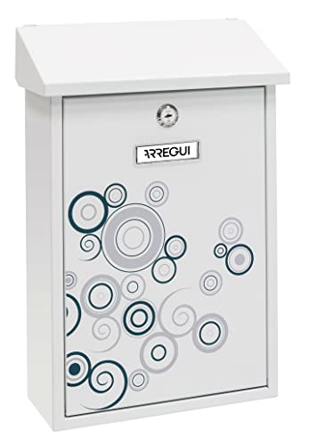 ARREGUI Premium E5606 Galvanised Steel Letterbox with Screen Print Spark Motif Size M (A4 Post) Wall-Mounted Letterbox for Outdoor Use with Flap White with Grey and Black