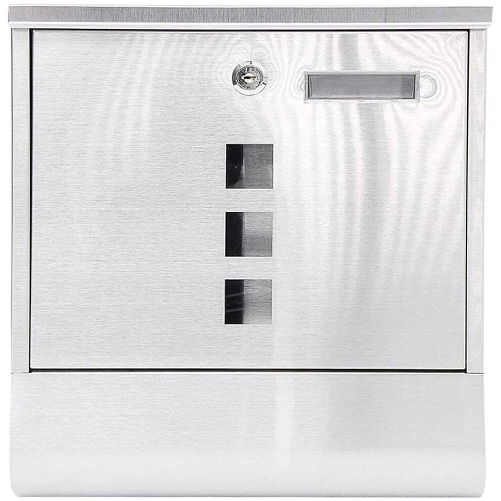 Stainless Steel Lockable Letterbox, Wall Mounted Outdoor Post Box with Waterproof Design and Viewing Windows