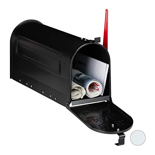Relaxdays US Mailbox, Vintage, American Letterbox Post, Large, HxWxD: 25x19x52.5 cm, Red Flag, Steel, Black