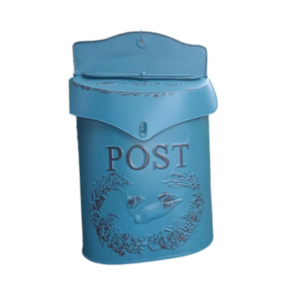 Mounted Post Box Shabby Chic Iron Letterbox for Outdoor Use in Blue with Vintage Style and Nostalgic Charm