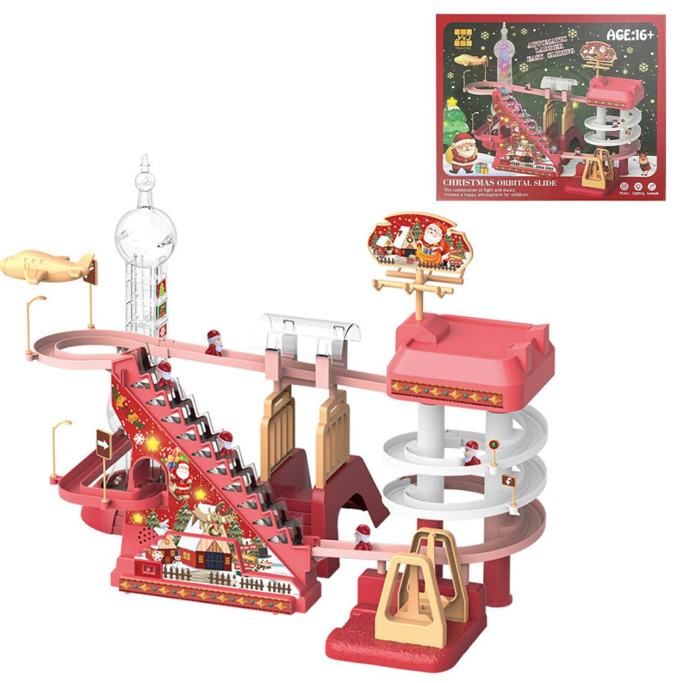 Remote Control Christmas Santa Claus Track Playset with Lights Music MultiLevel Slide Toy for Kids