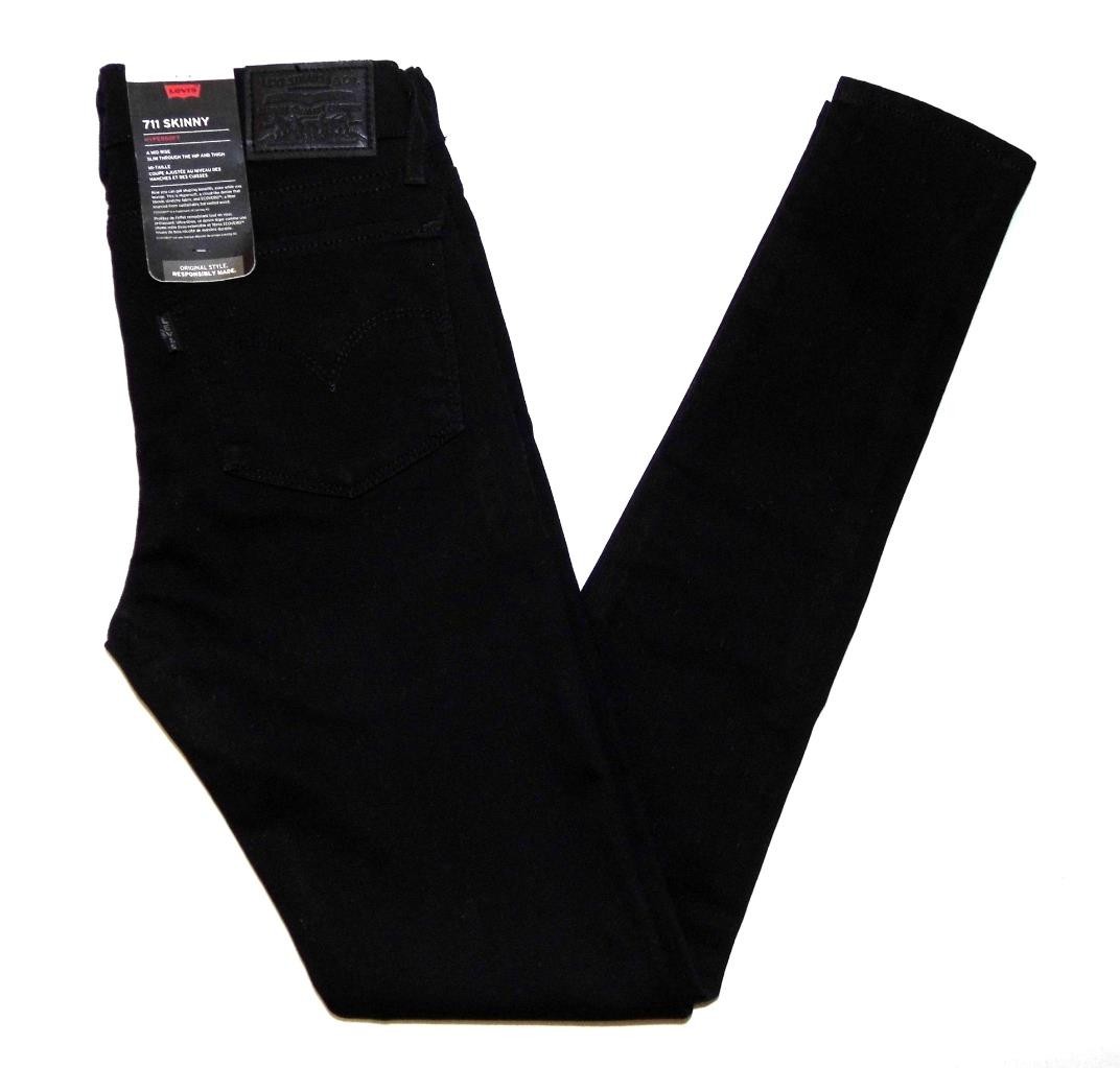 Levi Womens 711 SKINNY Stretch Skinny Black Jeans W25 L34 BNWT