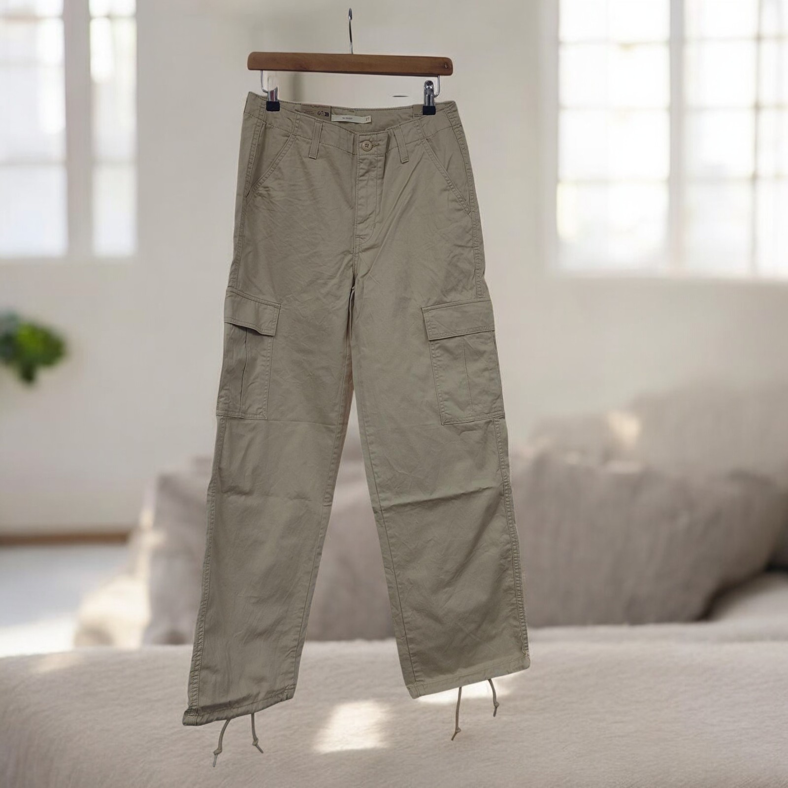 Womens Cargo Trousers Levis '94 Baggy Cargo Pants Mid Rise Twill Beige 31W 32L