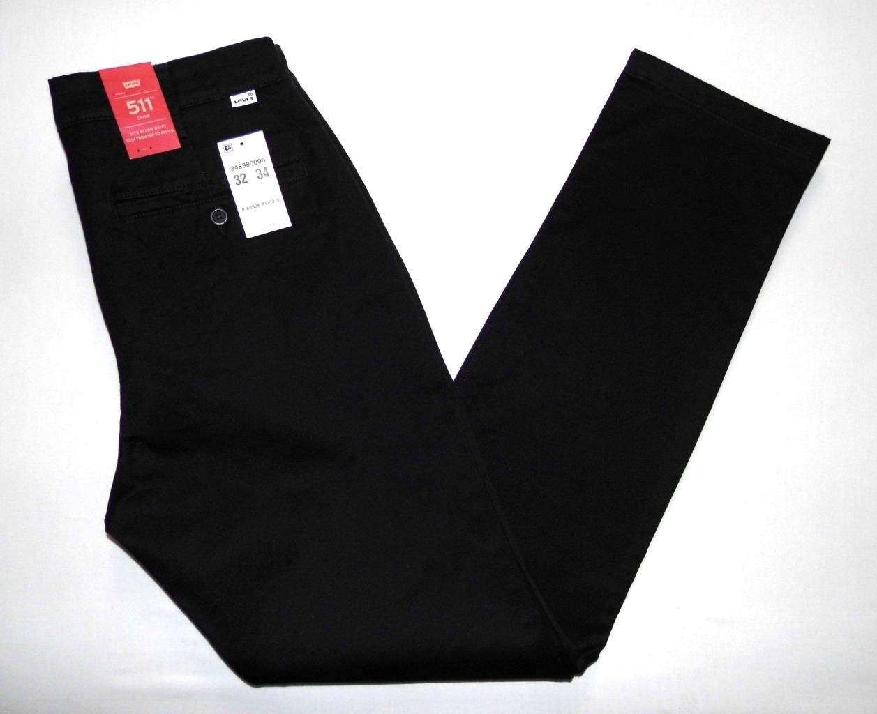 LEVI'S - Men's NEW 511 Slim Fit Chinos 32"W X 34"L Black Stretch Trousers Pants
