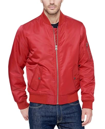 Levi's Men's Ma-1 Flight Lightweight Zip-up Bomber Jacket Varsity, True Red, M