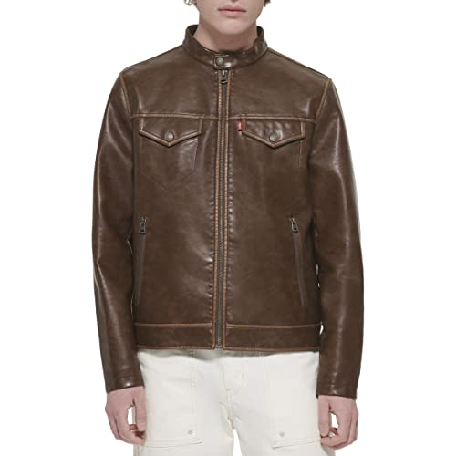 Levi's Men's Faux Leather Racer Jacket, Saddle, Medium
