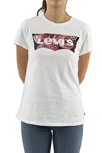 Levi's Women's The Perfect Tee- Pattern Batwing Logo T-Shirt, Housemark Photo Fill - White, S