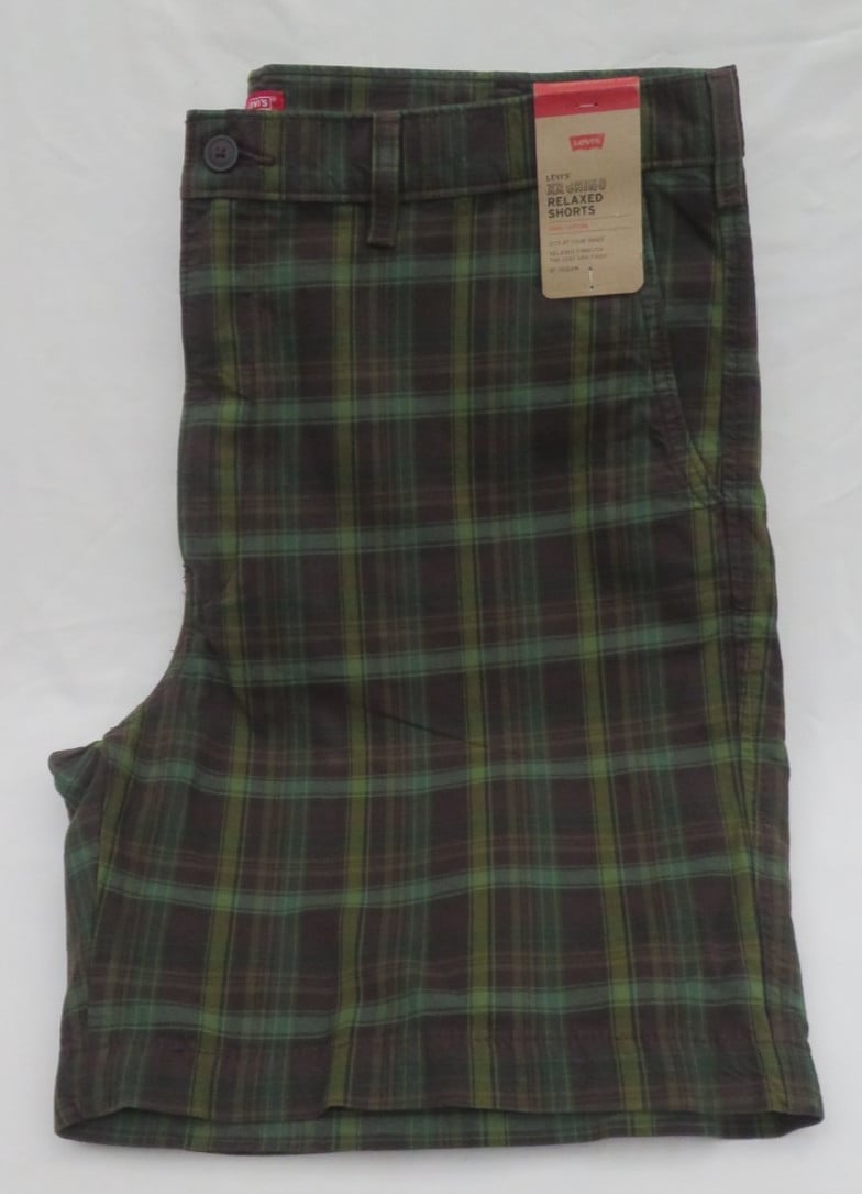 MEN'S LEVI'S GREEN AND BROWN CHECK COTTON CHINO SHORTS WAIST 38