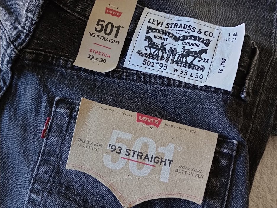 Levi's 501 '93 Straight *size 33W x 30L* original fit stretch jeans MEASURED NEW