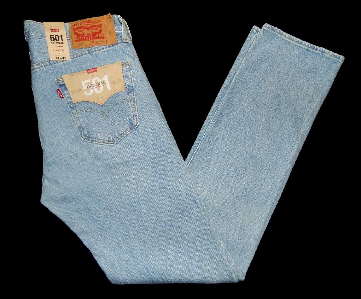 LEVI'S Men's NEW 501 Original Fit Jeans 32"W X 34"L Light Blue Stretch 005013184