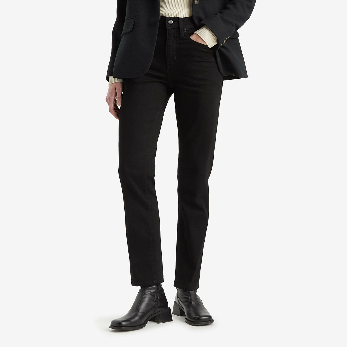 (33R, Black) Levis Womens/Ladies 724 Out Of Mind Leather Patch Straight Leg High Rise Jeans