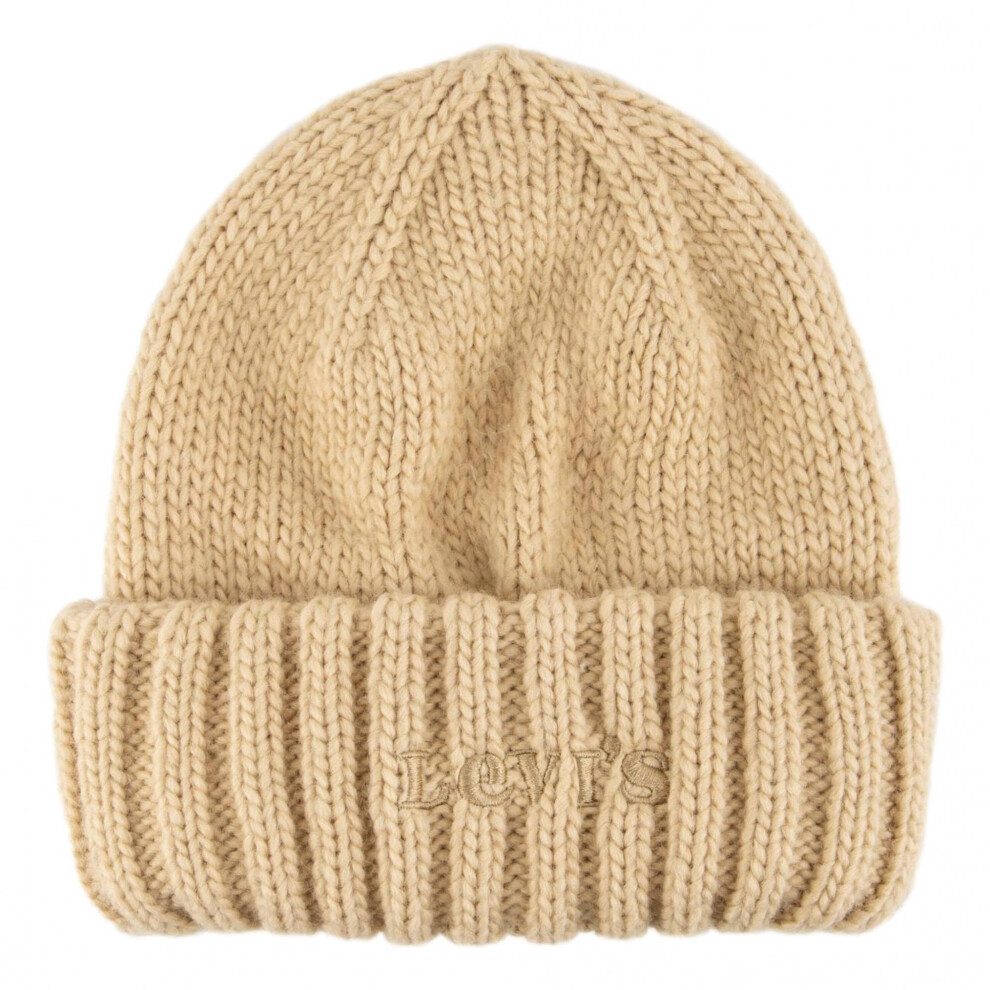 Levi's Unisex Classic Warm Winter Knit Cap Fleece Lined for Men and Women Beanie Hat, Tan Solid, One Size UK