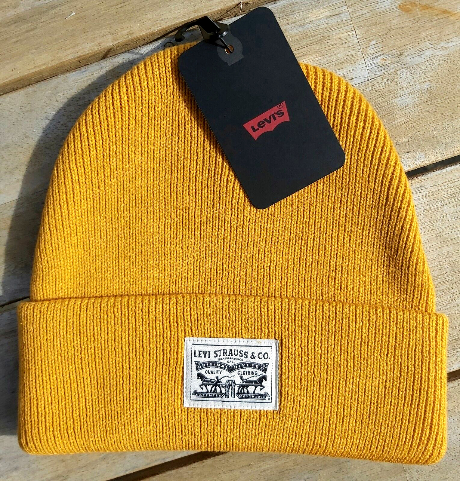 Genuine LEVI'S Golden Yellow Cuff BEANIE Logo Hat Toque Winter Mens Womens Tags