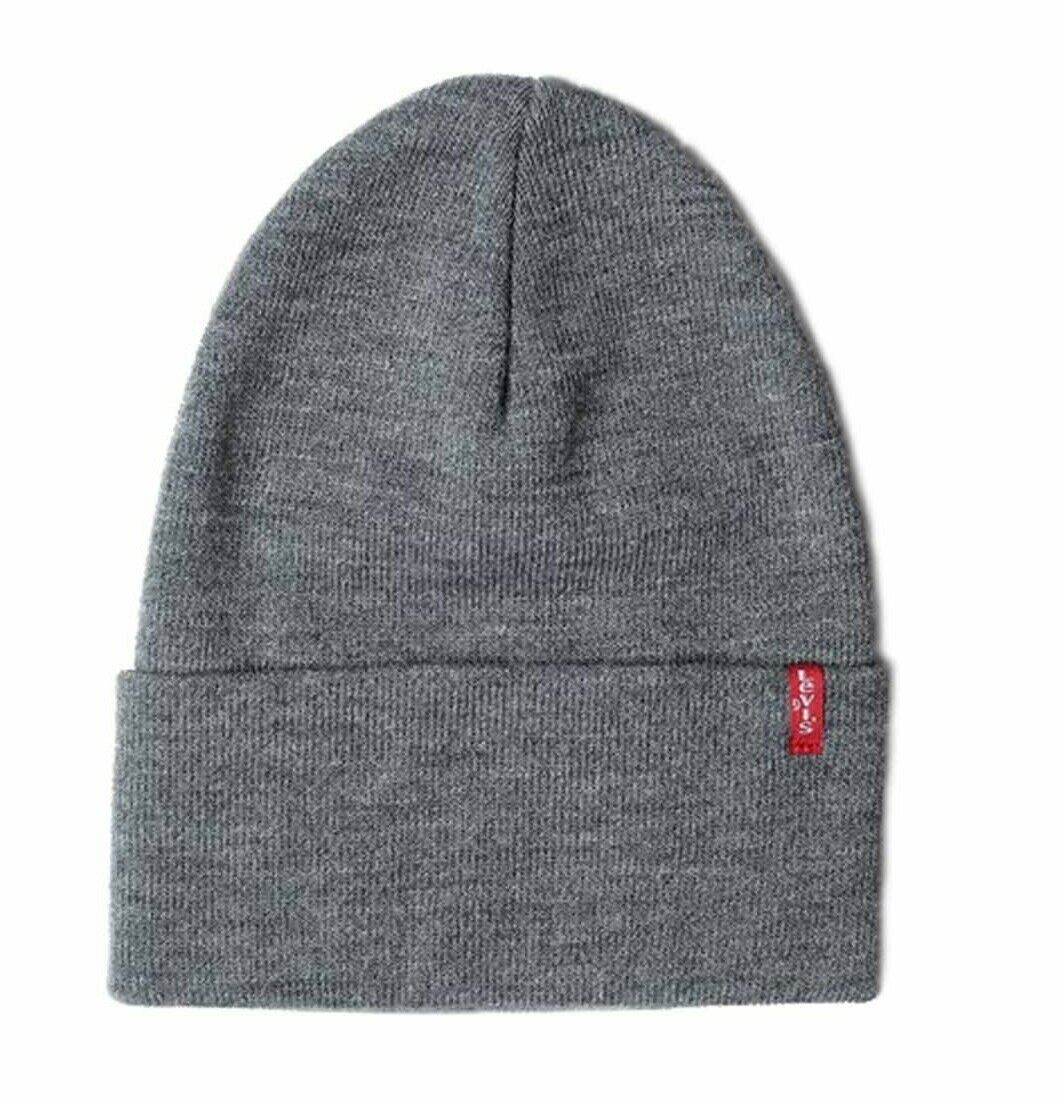 Genuine LEVI'S Grey with Tonal Logo BEANIE Hat Adult ITALY Levbox1