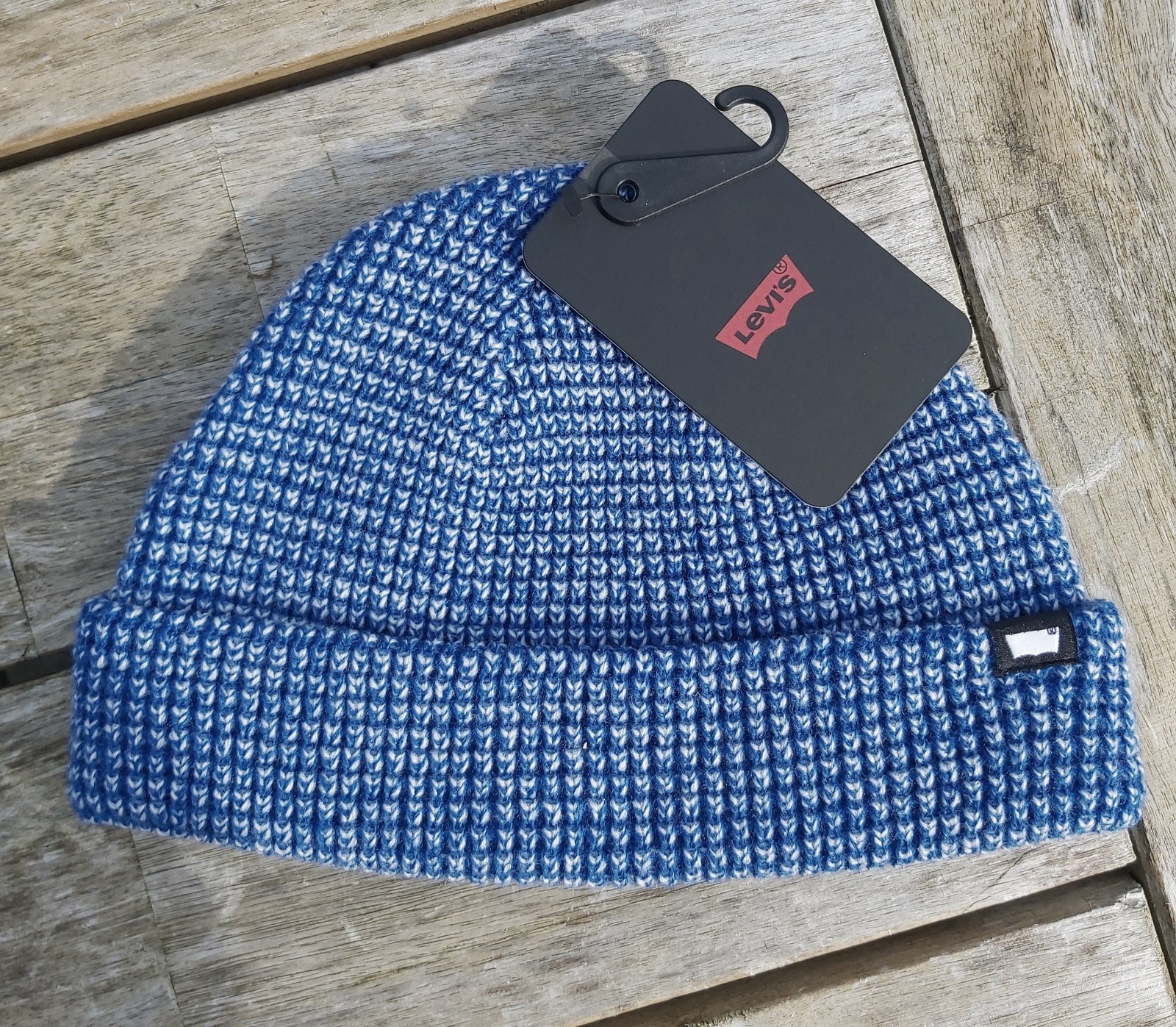 Levis Beanie Knitted Cuff Unisex Slouchy Red Tab light blue