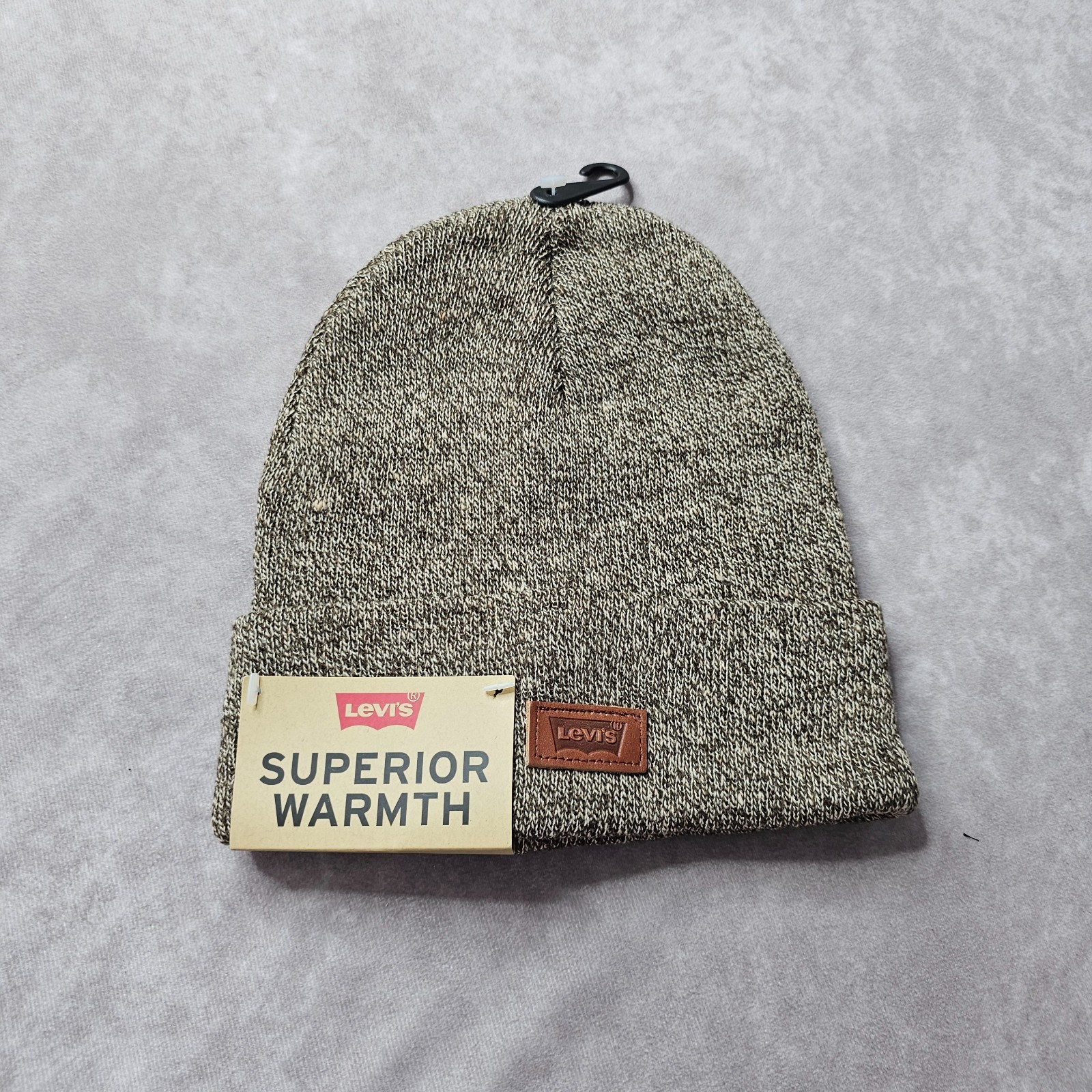 Levi’s Beanie Hat Unisex One Size Brown Marl Knit Cuffed Winter Warm