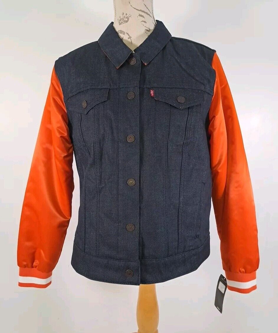 LEVI'S Chicago Bears Varsity Jacket NFL Denim Navy Orange BNWT Women's Size XL