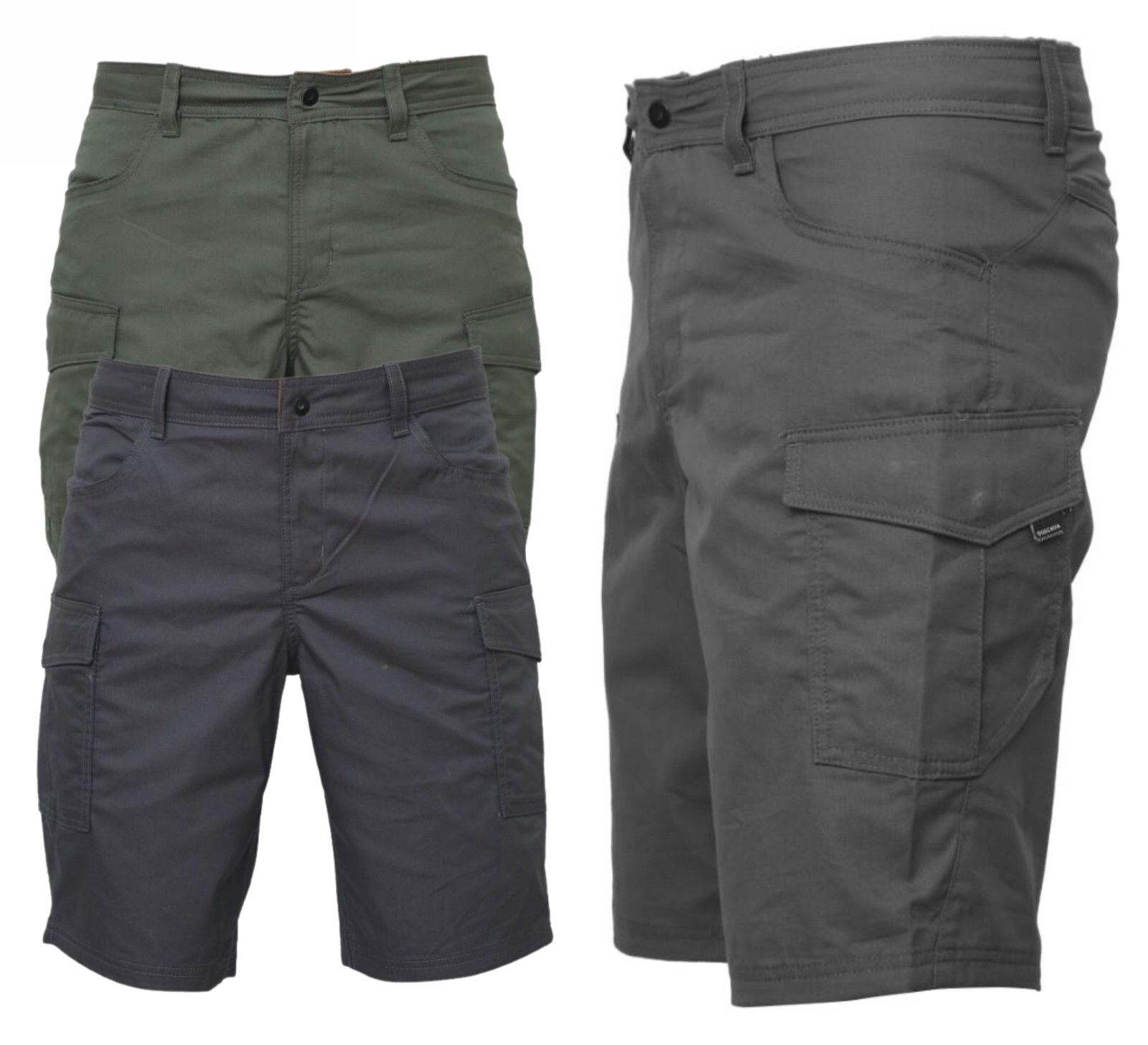 Mens Denim Combat Shorts Knee Length Elasticated Waistband Zip Fly Buttoned