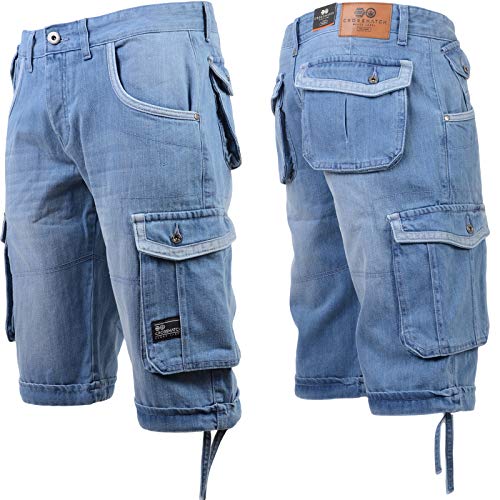 Crosshatch Mens Designer Cargo Knee Length Regular Fit Denim Jean Shorts (Light/New Berg, 36)