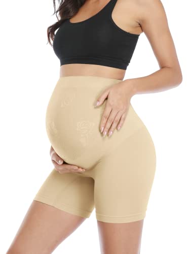 POSHGLAM Women's Maternity Shapewear Seamless Pregnancy Underwear Belly Support High Waist Mid-Thigh Panties Shorts, A02 Nude, XL