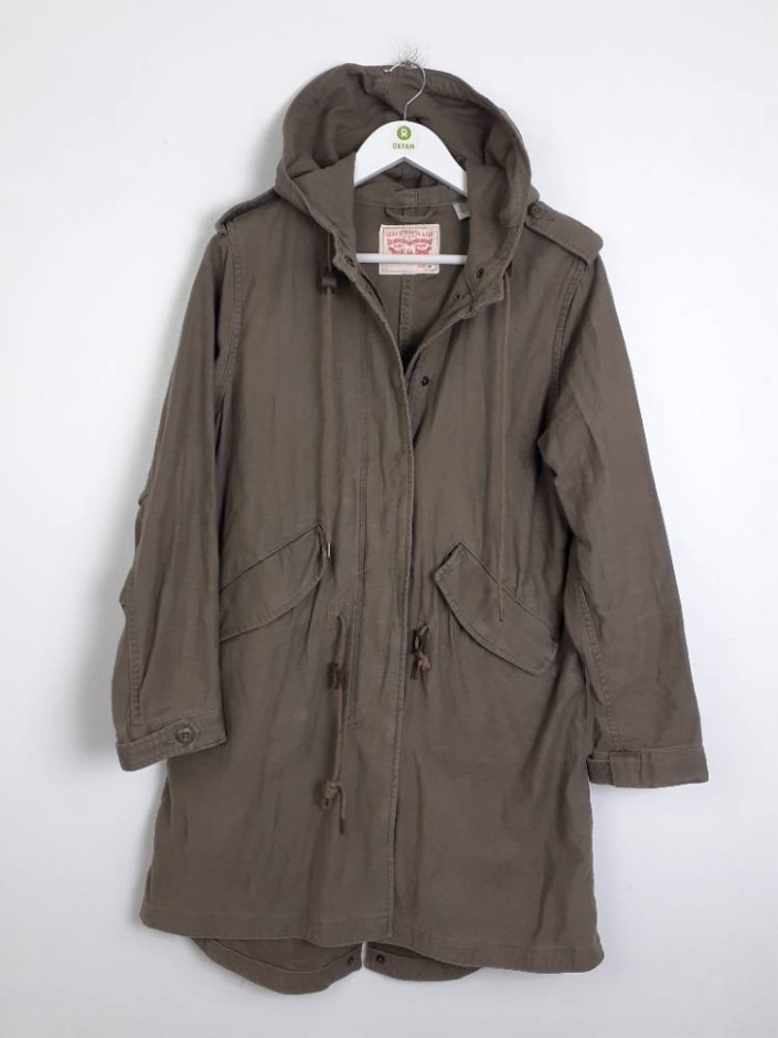 Levi's Cotton Hooded Parka Coat Khaki Green Size: M