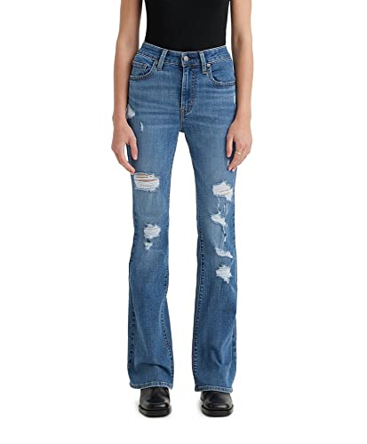 Levi's Women's Plus Size 726 High Rise Flare Jeans, Medium Indigo Destructed, 24 S