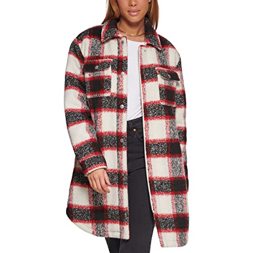 Levi's Women's Wool Blend Sherpa Lined Long Shacket (Standard & Plus Sizes), Red/White/Black Plaid, S