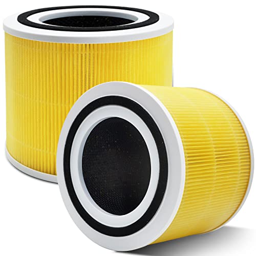 Core 300 Pet Allergy Replacement Filter for LEVOIT Core 300 andCore 300S Core 300-P Core 300S VortexAir Air Purifier 3-In-1 Filter H13 True HEPA, Efficiency Activated Carbon (Yellow-2 Pack)