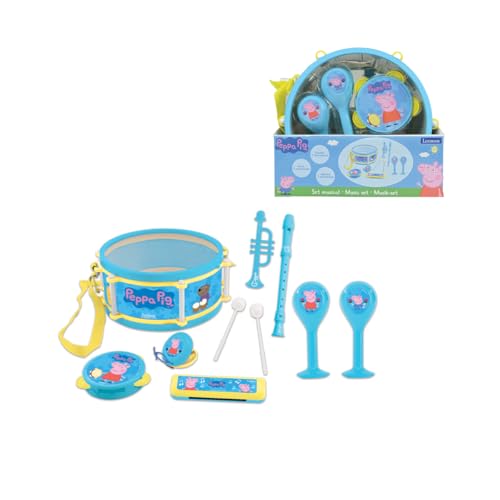 LEXIBOOK Peppa Pig Georges Musical Toy, Set of 7 music instruments (Drum, Maracas, Castanet, Harmonica, Recorder, Trumpet, Tambourine), Convenient game to carry, Blue/Yellow, K360PPLXB