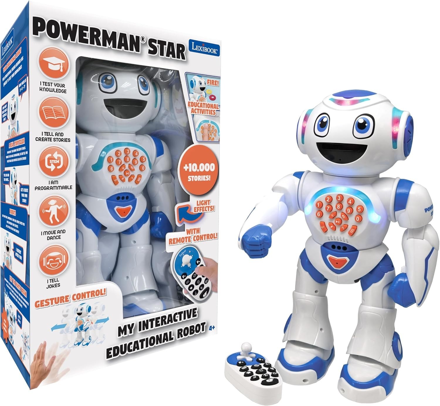 LEXIBOOK Powerman Star - Remote Control Walking Talking Toy Robot STEM Programmable for kids 4+ - ROB85ENLXB