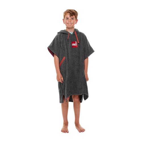 Red Original Kids Unisex Luxury Towelling Changing Robe, Surf Poncho Towel with Hood - Premium Cotton, Super Absorbent for Swimming, Surfing, Beach, Water Sports (Grey, S: heights 122cm – 155 cm)