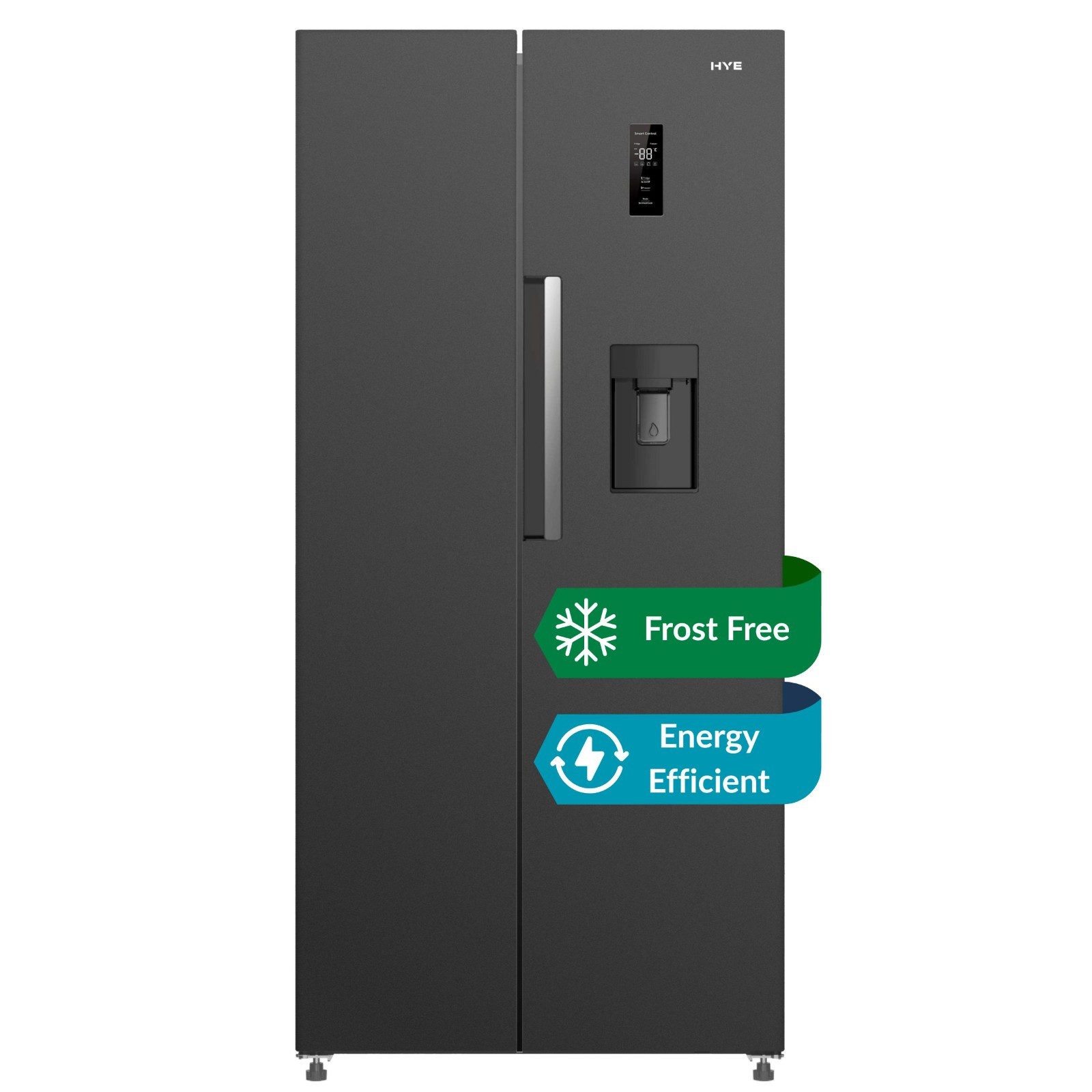 HYE 444 Litre Frost Free American Fridge Freezer Non-Plumbed Water 83cm - Black