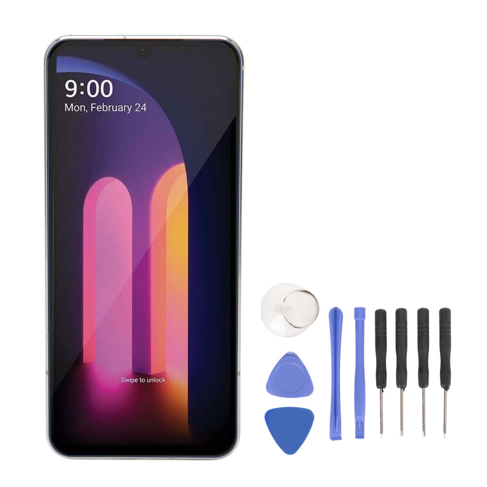 Screen Replacement For LG V60 ThinQ, 6.8 Inch Digitizer Assembly With Frame And Repair Tool Kit High Brightness OLED Display Compatible Model With QC